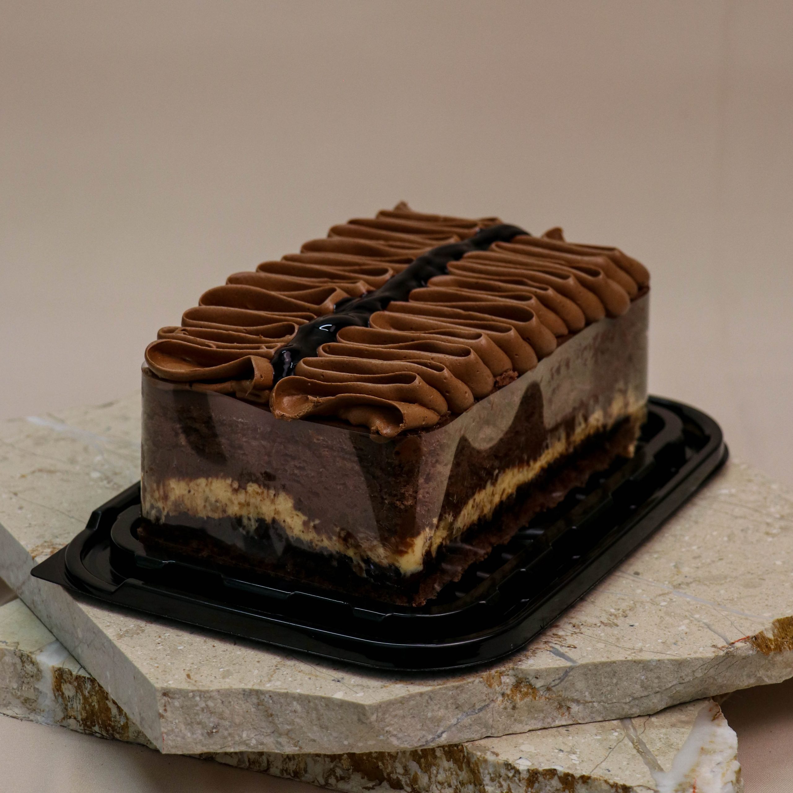 Основата на оваа торта започнува со кремаст фил од млечно чоколадо, по оригиналниот Мариели рецепт. Кремот е богат, со посебен допир на кафе ликер кој додава софистицирана горчина и сложеност, совршено комбиниран со слаткоста на чоколадото. Овој фил не само што е кремаст, туку и полн со длабочина, што го прави одличен избор за љубителите на чоколадо.